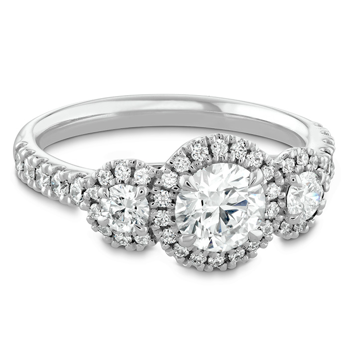 1.28 ctw. Integrity HOF Three Stone Halo Engagement Ring in Platinum