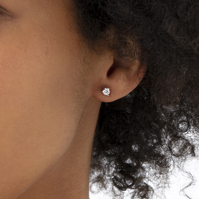 "An everyday staple, the Three-Prong Stud Earrings feature an elegant yet minimal setting that captures the fiery brilliance of our perfectly cut diamonds. "