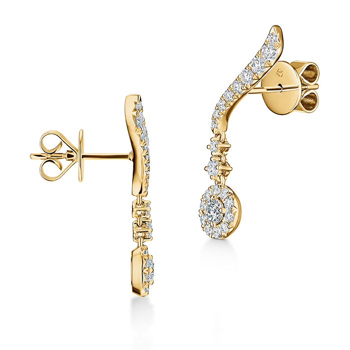 The most flattering silhouette, our Vela Drop Earrings climb the ear in one graceful motion. They are finished with a delicately dangling diamond.