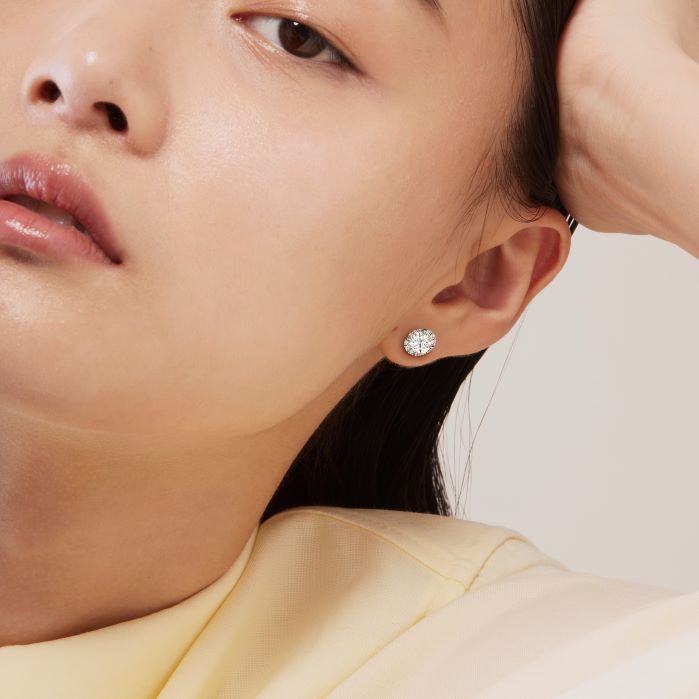 The Ellipse Diamond Earrings are out of this world. Each stud features a brilliant diamond accented with smaller stones on the north and south points to create a sparkling oval shape.