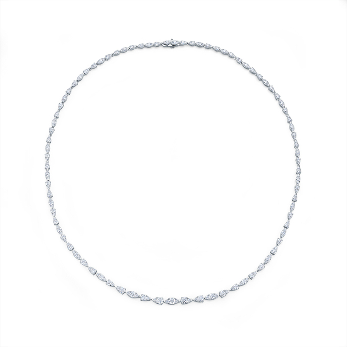 Elegance at long last. The Aerial Dewdrop Necklace showcases the most perfectly cut diamonds in the most perfect way. Using an illusion setting to create marquis and pear shapes, this piece is dressy enough for a fancy gala, and classic enough to wear with a crisp white button down and denim. Available in 16" or 18".