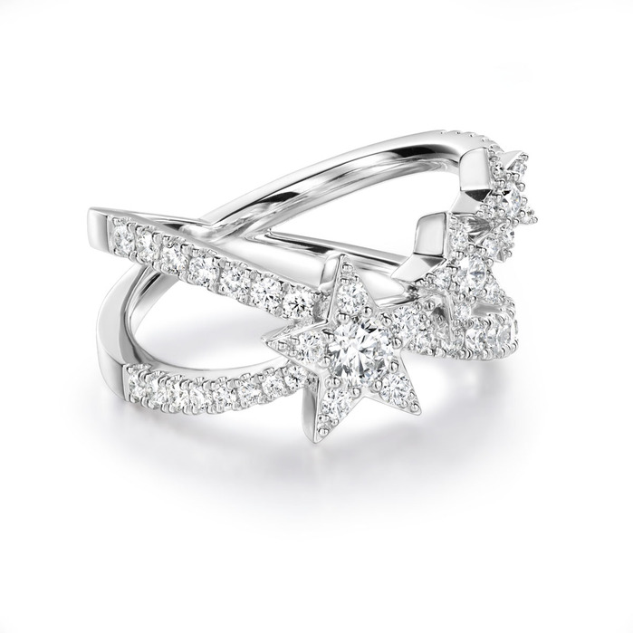 Everybody's starry eyed over the Illa Star of the Show Ring. This playful design features a constellation of diamond-studded celestial motifs that sparkle like stars in the night sky.