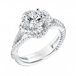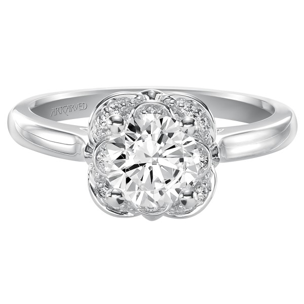 14K White Gold Engagement Ring with Diamond Halo and High Polished Band