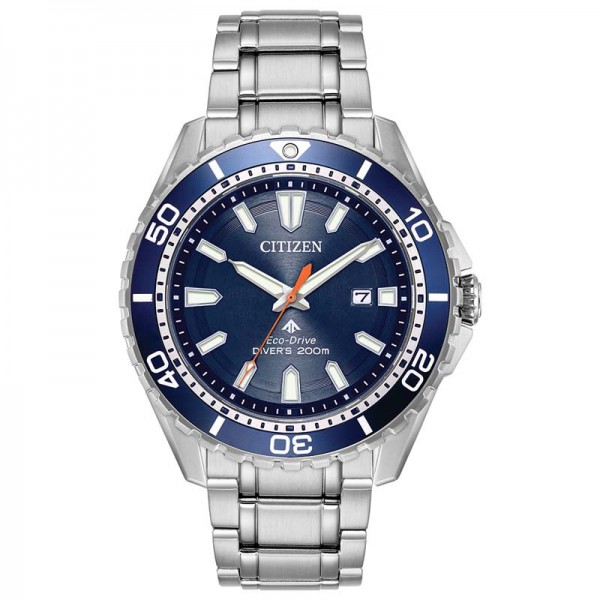 Proof that a dive watch can be fun & functional with the CITIZEN ISO-compliant Promaster Diver. With Eco-Drive technology, it is powered by light and never needs a battery, so you'll never need to open your caseback or compromise your dive again. Featured in stainless steel with azure blue aluminum bezel and matching azure blue dial, one-way rotating elapsed time and WR200. Caliber number E168.